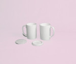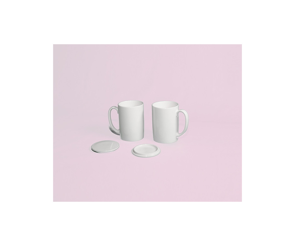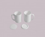 백색자기토로 제작한 것으로 대량으로 제작 할 수 있는 방법으로 석고 틀에 흙물을 부어서 만들어진 것으로 뚜껑까지 제작 하여 1차 850도 8시간 이상 가마소성 후 유약을 시유 하고 1250도 이상 10시간 이상 고온에 소성한 제품으로 음료나 커피 등을 마실 수 있는 용도이며 뚜껑이 결합된 것으로 2개가 1세트로 구성된 제품입니다.