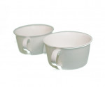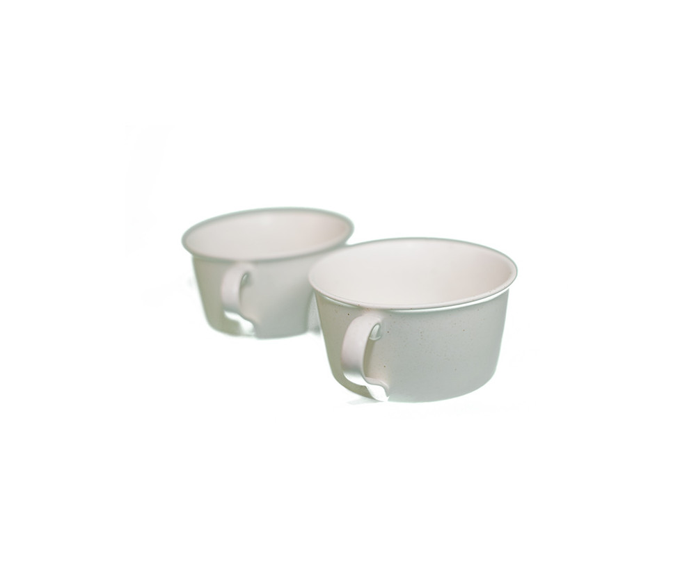 백색자기토로 제작한 것으로 대량으로 제작 할 수 있는 방법으로 석고 틀에 흙물을 부어서 만들어진 것으로 1차 850도 8시간 이상 가마소성 후 유약을 시유 하고 1250도 이상 10시간 이상 고온에 소성한 제품으로 혼족, 혼밥등 현재 트랜드처럼 늘어난 1인 가족으로 간단히 식사대용 용도로 라면이나 시리얼 등을 담을 수 있는 용기로 제작한 것으로 손잡이까지 있어서 사용하기도 편리 하게 제작하였습니다.