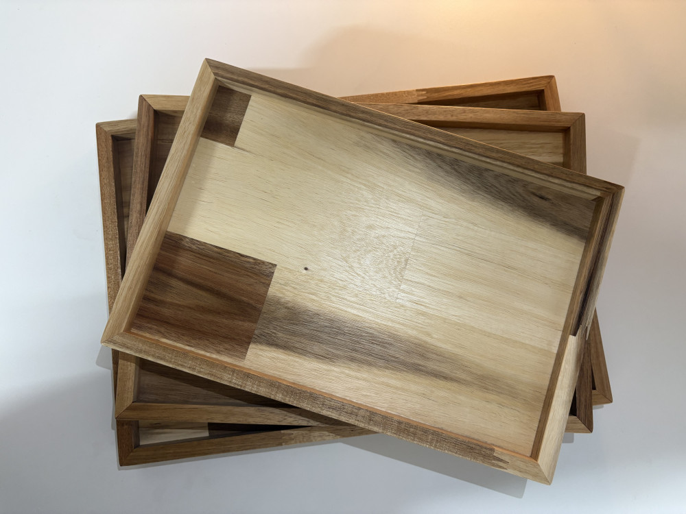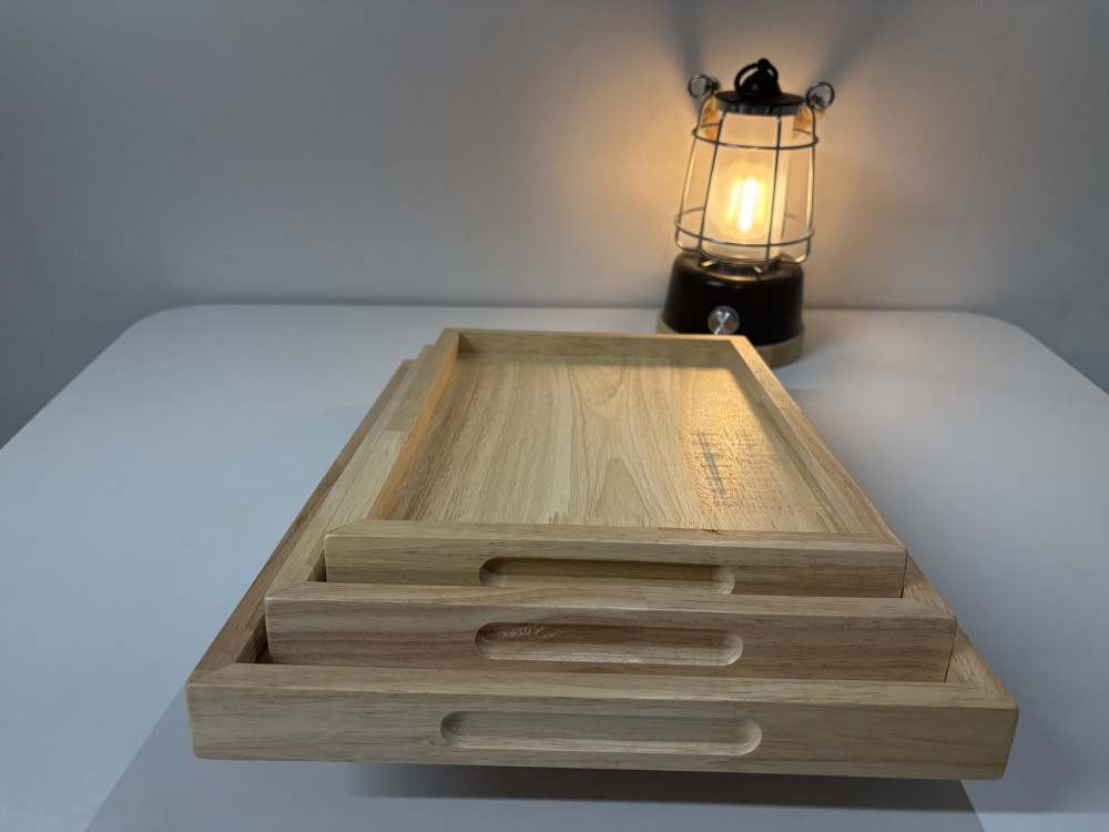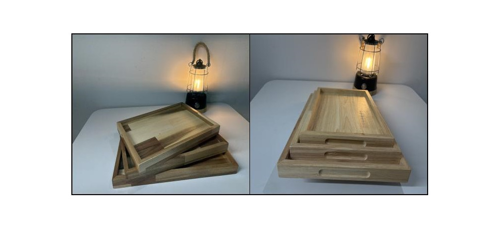 아카시아와 고무나무 원목으로 제작한 쟁반 세트 상품입니다.