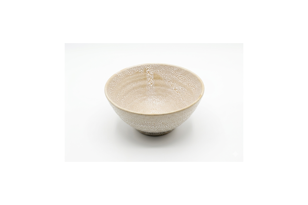 물레를 이용하여 형태를 만들고 건조 후 1차 850도 8시간 이상 가마소성 후 유약을 시유 하고 1250도 이상 10시간 이상 고온에 소성한 제품으로 음식을 담을 수 있는 용도로 제작하였습니다.